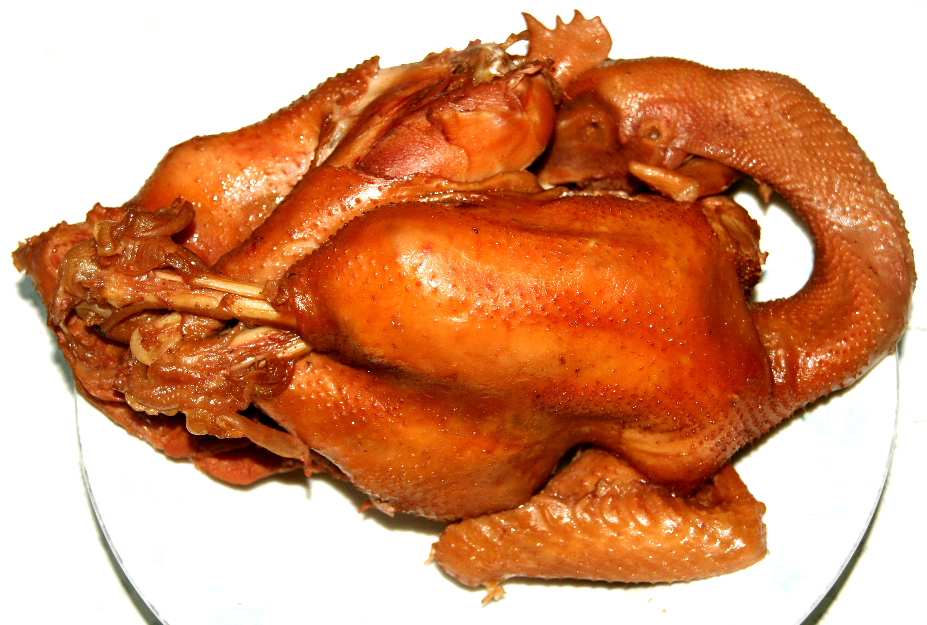 1992年版《正定县志》第376页中记载:卤鸡“明末清初由河北安国县回族马氏传入真定。”